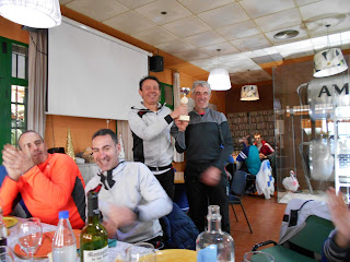 Un año más hemos realizado nuestra carrera para despedir el año, hemos echado de menos a los compañeros y compañeras que por diversas circunstancias no han podido asistir pero su espíritu ha estado con nosotros. Hemos cambiado el lugar de partida para poder tener acceso a ducharnos en esta mañana bastante fría y con niebla, en todo caso el almuerzo ha sido reconfortante. Este año el ganador de la carrera ha sido Eduardo, Alberto, ganador del año pasado, le ha entregado el trofeo que lo acredita por un año como vencedor de nuestra competición.